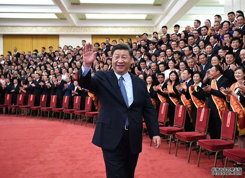 上午10时,习近平等来到人民大会堂北大厅,全场响起热烈掌声。习近平等同代表们亲切握手,不时交谈,并同大家合影留念。
